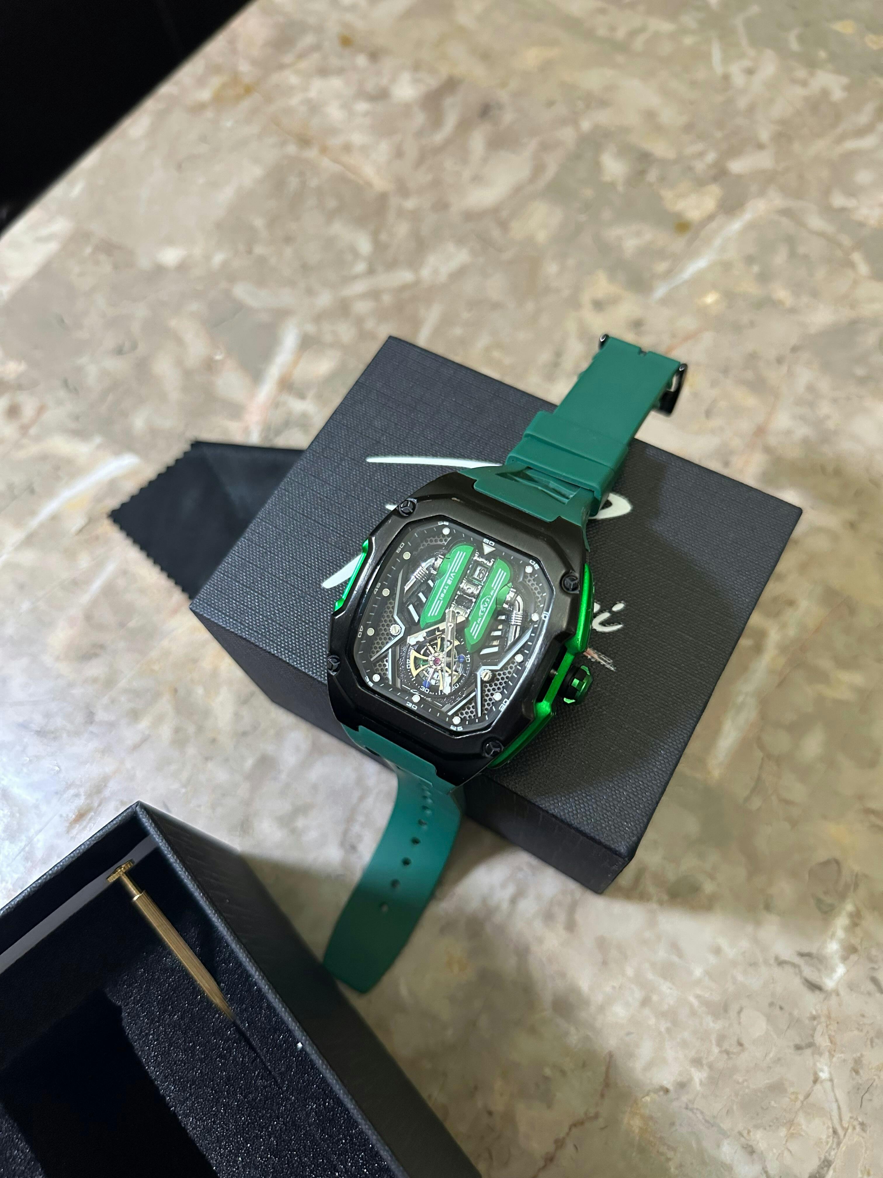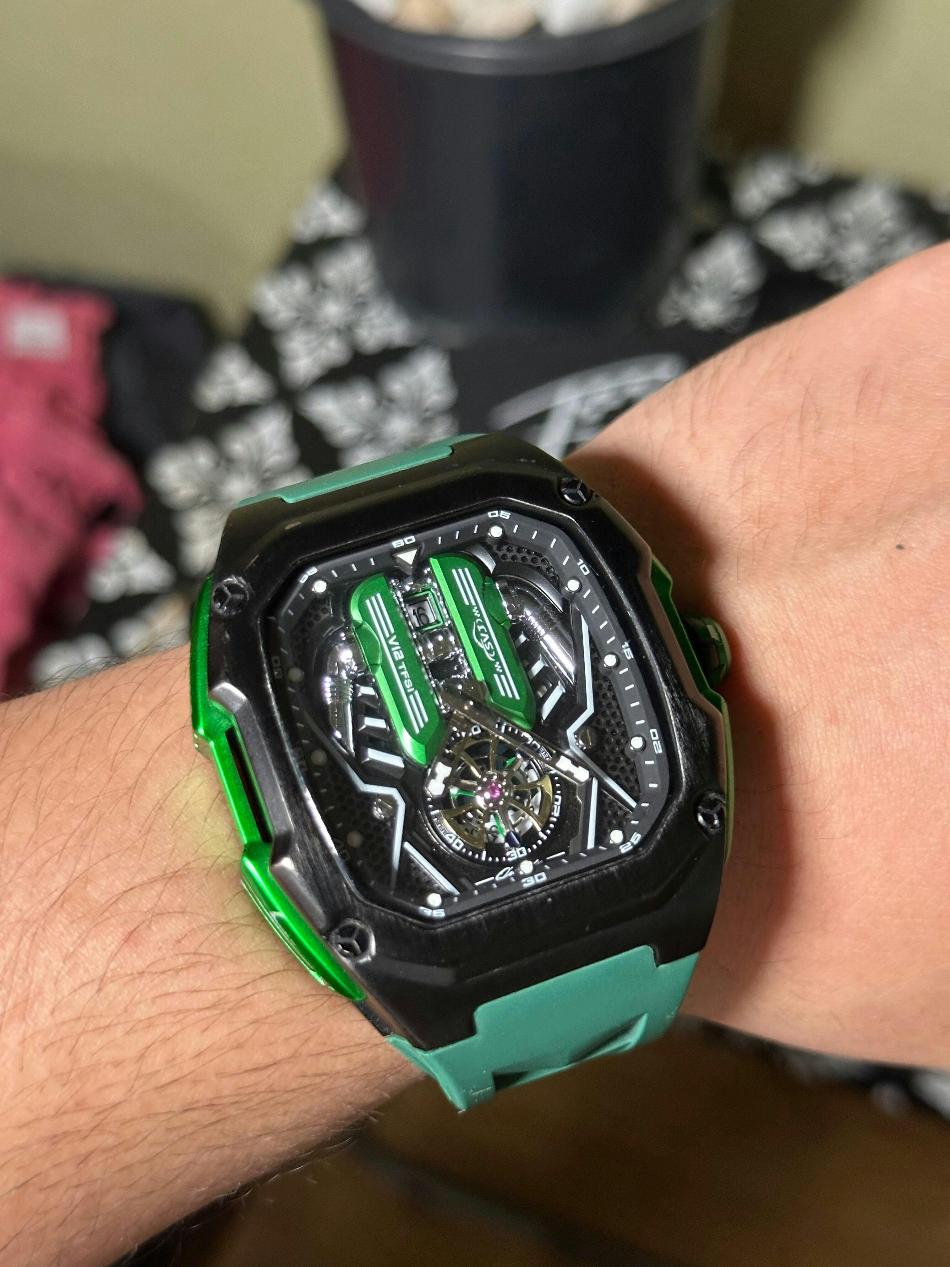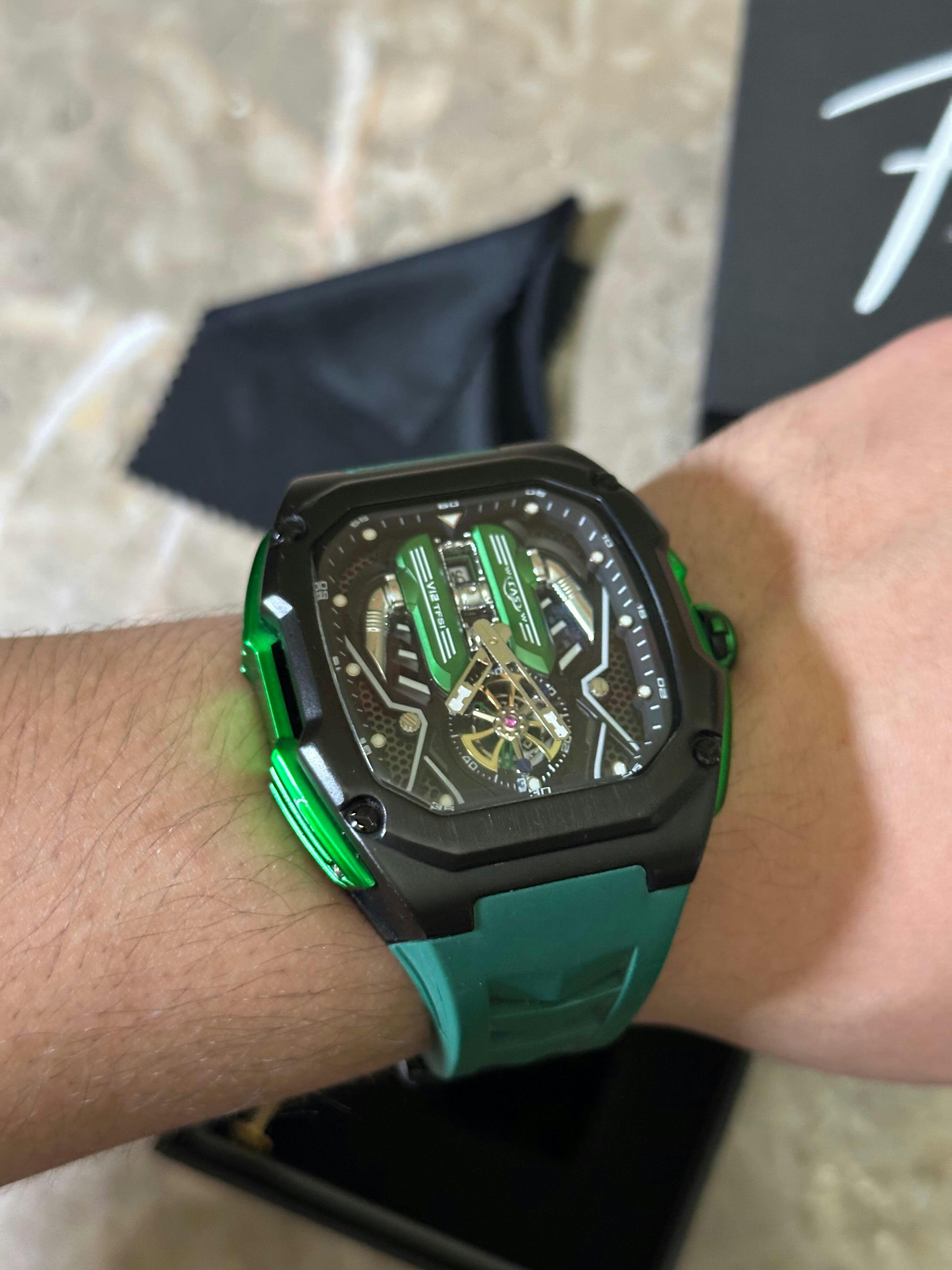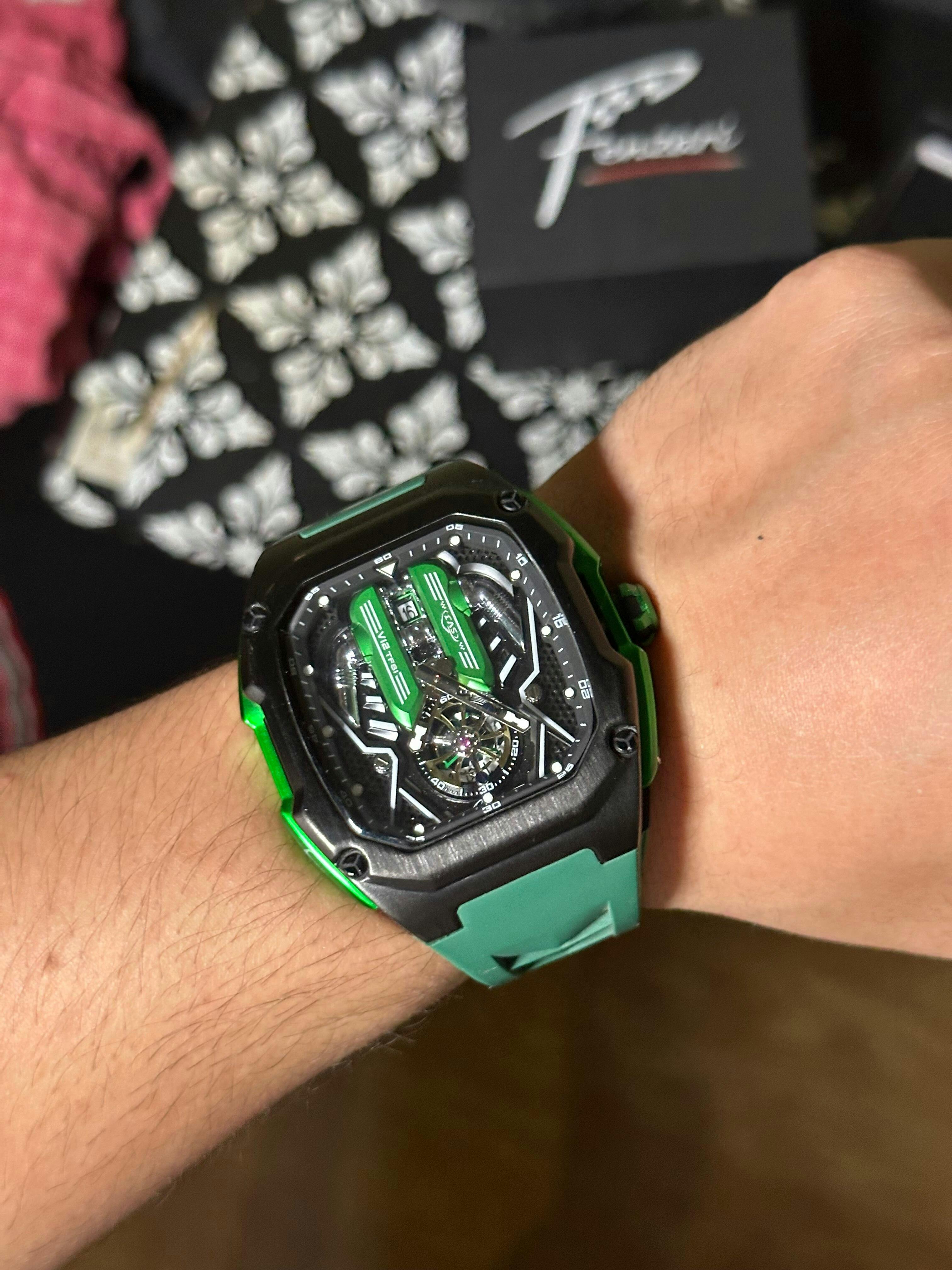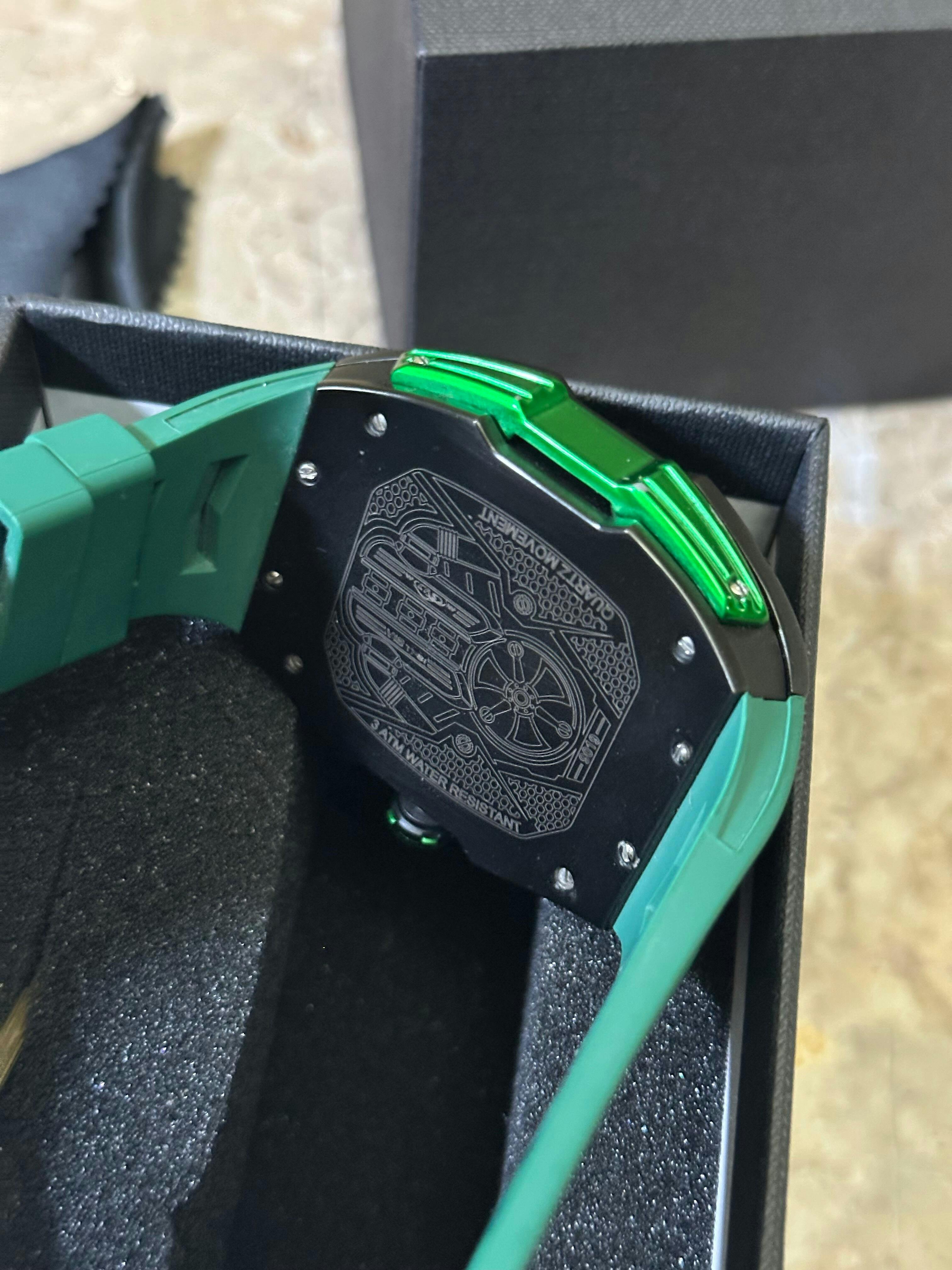 Featuring carbon fiber-style backplates and bold, performance-driven aesthetics, each timepiece captures the thrill of speed and the elegance of engineering.