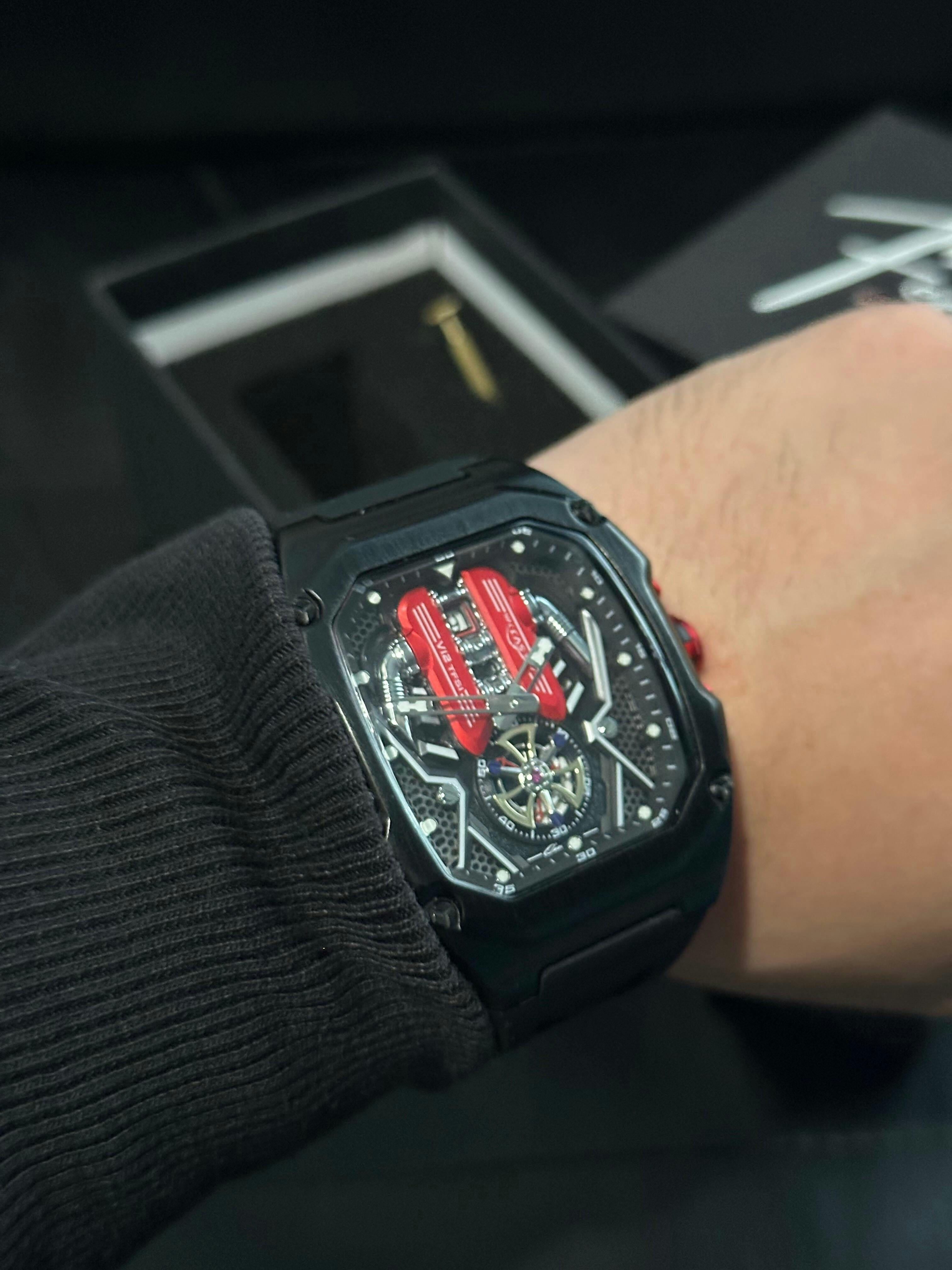 Featuring carbon fiber-style backplates and bold, performance-driven aesthetics, each timepiece captures the thrill of speed and the elegance of engineering.
